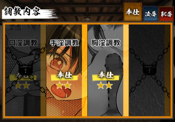 有「侍奉」「凌辱」「耻辱」3种不同系统的调教可供挑选